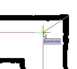 - Activez la fonction d'accrochage aux objets d'extrémité (Accrobj activé) et sélectionnez l'angle supérieur gauche de la bordure vectorielle comme second point de destination.