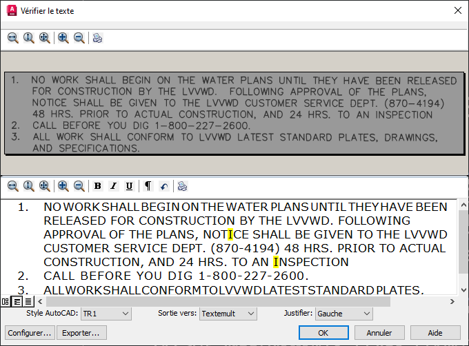 Conversion de texte raster dactylographié en texte multiligne AutoCAD