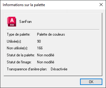 Le Gestionnaire de palettes permet d'afficher des informations détaillées sur l'image et sur les couleurs utilisées.
