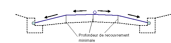 Profondeur minimum du recouvrement au niveau des points 1/4 et du dévers. |