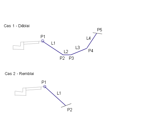 Le point d'association se situe sur le bord intérieur de la pente avant fossé pour déblai et sur le bord intérieur du lien d'entrée en terre pour remblai.