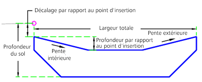 En mode d'édition, cet élément de profil type dessine le jardin pluvial selon les paramètres d'entrée.