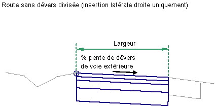 Spécifie l'emplacement du point d'insertion de la voie au niveau du dévers ou sur le bord de la chaussée |