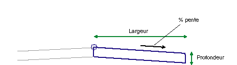 L'élément de profil type construit une surface avec surface finale et couche de matériau, fermée par des liens verticaux à chaque extrémité. La voie est insérée vers l'extérieur à partir du point d'association pour les largeur, profondeur et pente données.