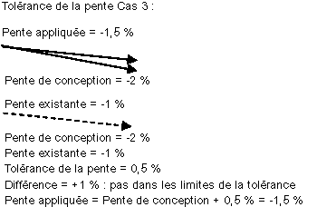La valeur autorisée par les pentes de recouvrement diffèrent de leur valeur de conception. La tolérance de la pente n'est pas utilisée si le paramètre pente de recouvrement est défini sur M (voir la section Comportement ci-dessous pour des explications détaillées). |