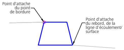 | Point d'attache | Spécifie l'emplacement du point d'attache de la bordure. | Rebord/PointBordure/Surface de la ligne d'écoulement |