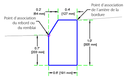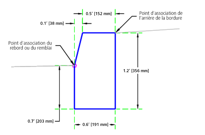 L'élément de profil type BorduresCaltrans insère des liens pour créer des bordures et caniveaux basés sur les plans standard RSP A87A de Caltrans.