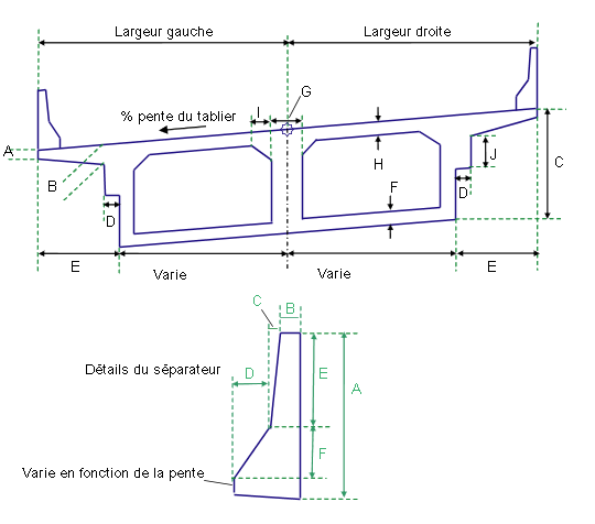 Inclut ou omet les séparateurs de chaque côté du tablier de pont. |