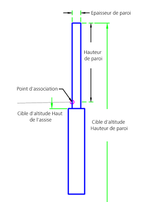 | Hauteur de paroi | Hauteur du mur au-dessus du point d'association | Numérique, positive |