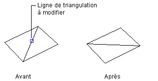L'échange de bords permet de modifier l'orientation de deux faces triangulaires dans la surface afin de créer un modèle de surface plus exact. Par exemple, les bords peuvent être échangés afin de concorder avec les bords triangulaires des crêtes ou des cuvettes.