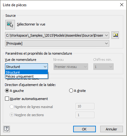 Dans la liste de pièces, les méthodes de création de listes de pièces héritées sont supprimées du menu déroulant. Si nécessaire, la clé de registre peut être fournie pour afficher les listes de pièces héritées.