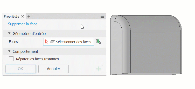 Pour en savoir plus, reportez-vous à la section Supprimer la face.