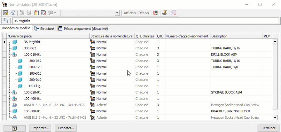 Pour en savoir plus sur les options de visibilité des composants d’un ensemble, reportez-vous à la rubrique Visibilité des composants d’un ensemble.