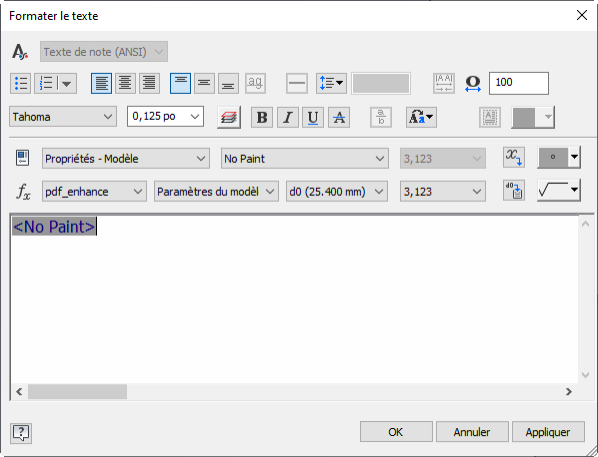 Pour en savoir plus, reportez-vous à la rubrique Référence relative à l’onglet Pièce (Options d’application).