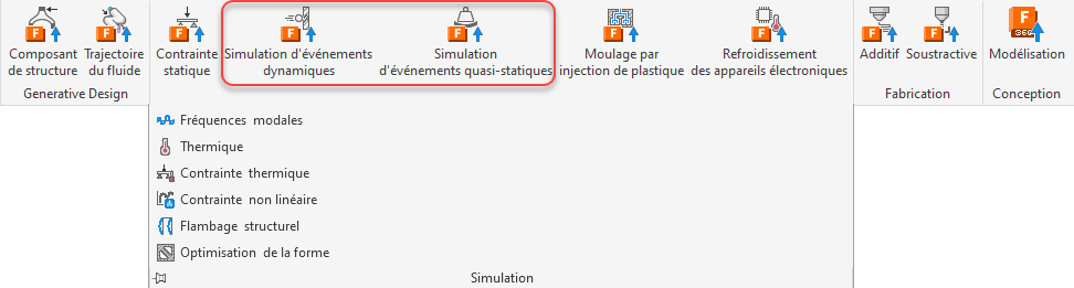 La simulation d’événements a été divisée en deux types, dynamique et quasi-statique, pour améliorer le workflow pour les outils Inventor vers Fusion 360.