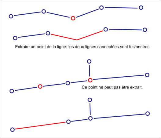 Si vous supprimez un point, vous devez mettre à jour la topologie de réseau afin de maintenir la cohérence du réseau. Si vous supprimez un point de réseau, vous devez, par exemple, fusionner les deux lignes connectées. Si plus de deux lignes sont connectées au niveau du point, vous ne pouvez pas supprimer ce dernier.