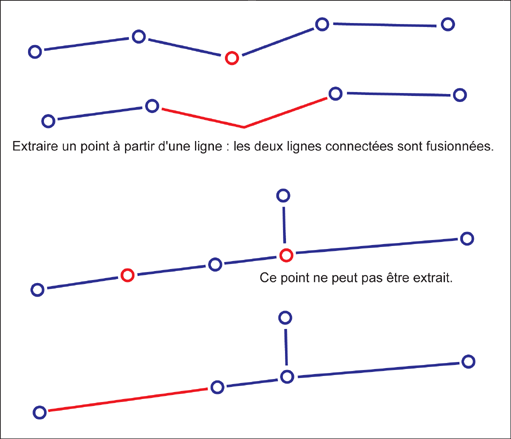 Si vous supprimez un point, vous devez mettre à jour la topologie de réseau afin de maintenir la cohérence du réseau. Si vous supprimez un point de réseau, vous devez, par exemple, fusionner les deux lignes connectées. Si plus de deux lignes sont connectées au niveau du point, vous ne pouvez pas supprimer ce dernier.