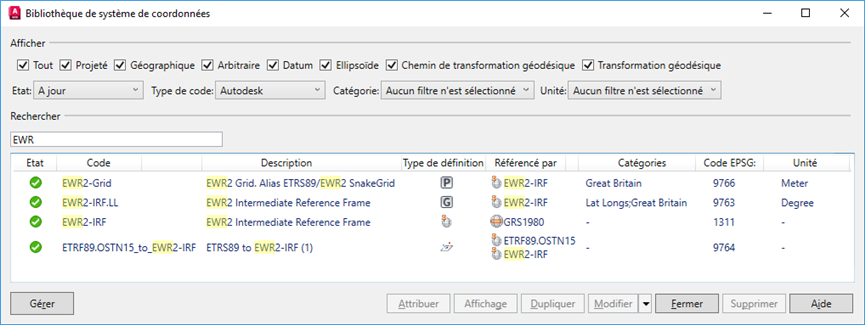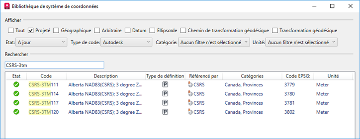 AutoCAD Map 3D 2024 prend en charge les nouveaux systèmes de coordonnées dans les catégories suivantes :