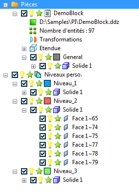 pour ramener les surfaces CAO actuellement stockées dans des niveaux personnalisés à leurs niveaux d'origine.