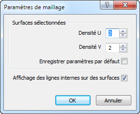 - Pour utiliser les valeurs de maillage actuelles comme étant les valeurs par défaut pour les nouveaux modèles ajoutés au document, cochez la case Enregistrer paramètres par défaut.