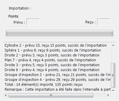 liste les détails des éléments importés. Quand l'importation est terminée, un résumé est affiché, par exemple :
