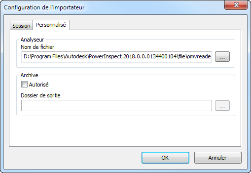 - Par défaut, PowerInspect utilise reader_psfixture.rsf dans le dossier \omvreaders pour importer des données de mesures. Si vous voulez utiliser un script d'importation différent :