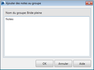 Indique le nom du groupe de spécifications des tuyauteries. La note est définie pour l'ensemble du groupe. Les notes sont incluses lors de l'impression de la feuille de spécification des tuyauteries.