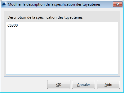 Permet de modifier la description principale dans une feuille de spécification des tuyauteries.