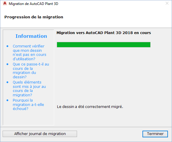 L'assistant de migration de dessin s'ouvre.