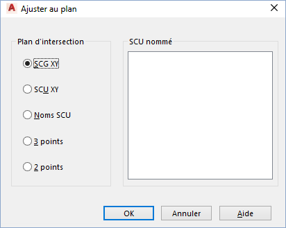 Indique d'utiliser comme plan de coupe le plan XY du système de coordonnées utilisateur nommé défini et enregistré dans AutoCAD.