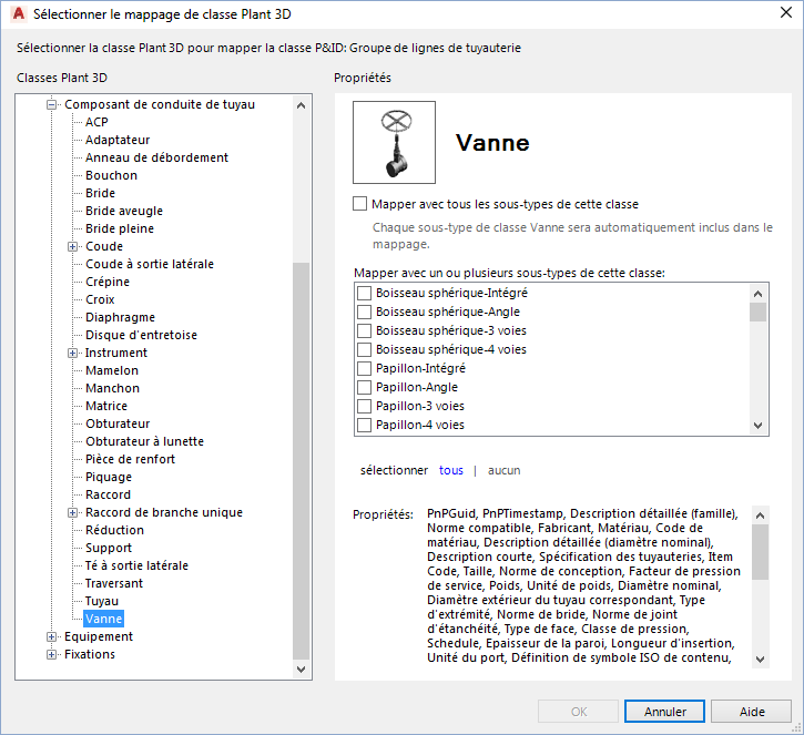 - Dans la boîte de dialogue Sélectionner le mappage de classe Plant 3D, effectuez les opérations suivantes :