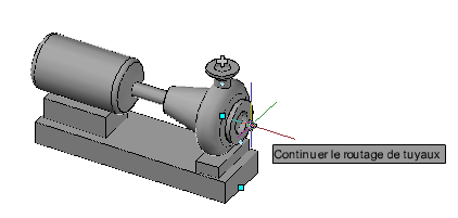 Vous pouvez continuer une route ou créer une branche à l'aide d'une poignée de continuité. Des poignées de continuité sont disponibles à partir de tuyaux, raccords de tuyauterie et piquages.