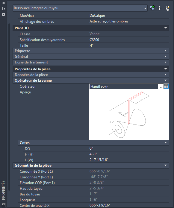 Dans la palette des propriétés, recherchez Plant 3D