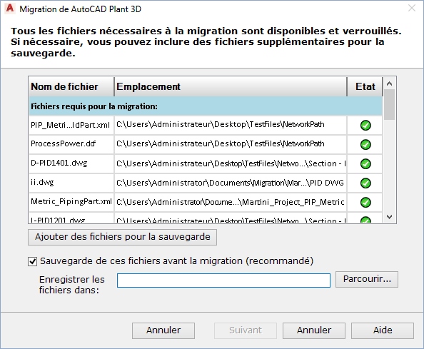 - Pour sauvegarder les fichiers, sur la page indiquant la disponibilité des fichiers, choisissez l'option Sauvegarde de ces fichiers avant la migration (recommandé), si elle n'est pas déjà sélectionnée.