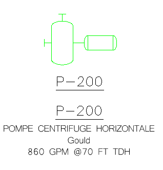 Voici un exemple d'une pompe centrifuge horizontale annotée avec une étiquette de pompe et une Etiquette d'informations de pompe :
