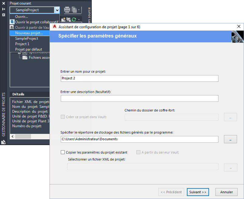 Le projet par défaut et tous les projets que vous créez contiennent des paramètres par défaut concernant les chemins, les dessins, la configuration du Gestionnaire de données, etc. Ces paramètres par défaut conviennent souvent pour la plupart des tâches d'un projet. Toutefois, vous pouvez les configurer en fonction des besoins spécifiques de votre entreprise ou de votre client. Vous pouvez configurer votre environnement de dessin dans la boîte de dialogue Configuration de projet.