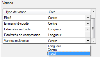 Les cotes entre les vannes peuvent être désactivées dans la configuration du projet pour les dessins isométriques.