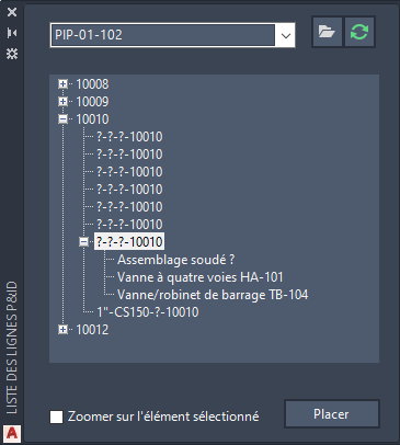 Liste de lignes P&ID.