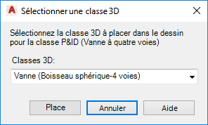 - Si la classe d'objet P&ID est associée à plusieurs classes Plant 3D, dans la boîte de dialogue Sélectionner une classe 3D, cliquez sur une classe Plant 3D. Cliquez sur Positionner.
