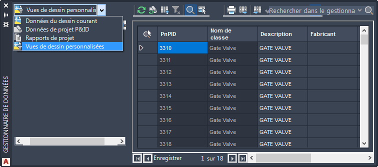 Dans la liste déroulante du Gestionnaire de données, cliquez sur une vue personnalisée.