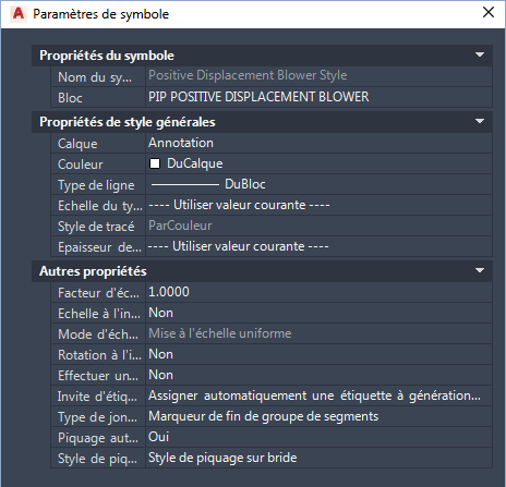 - Dans l'arborescence Configuration de projet, développez Paramètres de fichier DWG Plant 3D