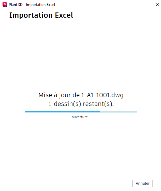 Remarque : La progression de l’importation s’affiche uniquement lorsque la mise à jour a une incidence sur plusieurs dessins.