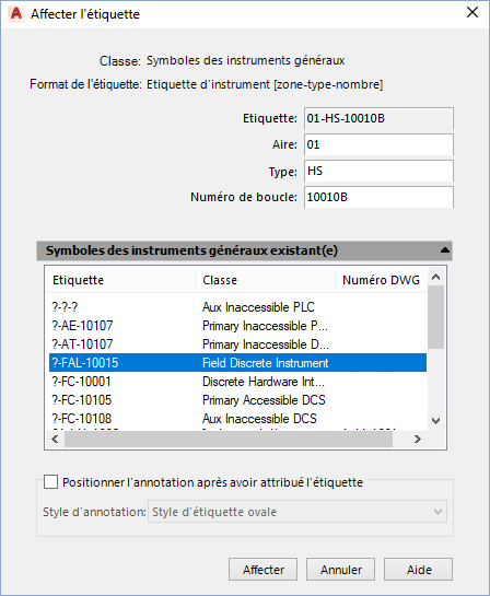 Si votre administrateur a configuré un format d'étiquette, la boîte de dialogue Affecter l'étiquette s'affiche lorsque vous ajoutez un composant ou une ligne exigeant une étiquette.