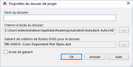 Indique l'emplacement de dossier pour tous les nouveaux fichiers de dessin associés au dossier.