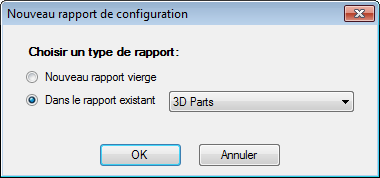 - Dans la boîte de dialogue Nouveau rapport de configuration, cliquez sur Dans le rapport existant et sélectionnez la configuration à modifier. Cliquez sur OK.