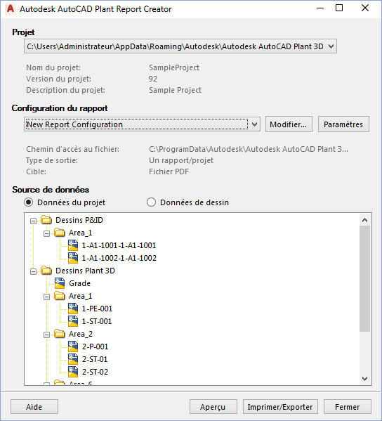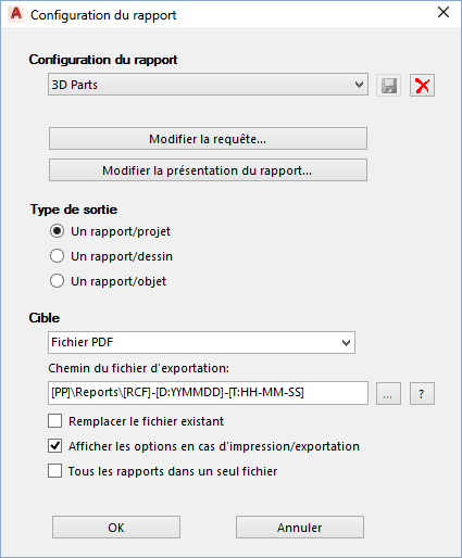 - Dans la boîte de dialogue Configuration du rapport, effectuez les opérations suivantes :