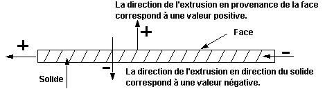 L'extrusion d'un toit peut s'étendre dans une direction positive ou négative, le long du plan perpendiculaire à la face d'un composant solide (tel qu'un mur).