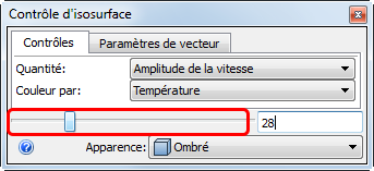 Remarque : cette option crée une iso-surface affichant la température partout dans le modèle où le flux se déplace à 28 ft/min.