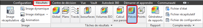 Les pièces de résultats sont idéales pour déterminer les températures sur les pièces sélectionnées. Pour comparer les résultats provenant de plusieurs pièces, convertissez-les en pièces récapitulatives et visualisez leurs résultats dans l'onglet Valeurs critiques de la barre données de sortie.