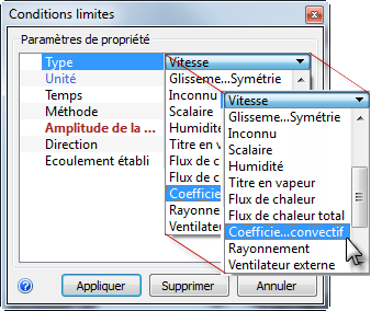10. Dans la rangée Type, sélectionnez Coefficient de transmission superficielle.